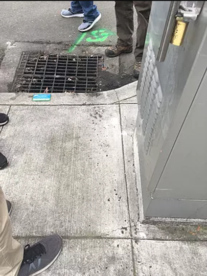 In the above picture you can see some discoloration on the curb to the right of the plaque. That’s from rats. They have oil on their skin and in their hair just like us, but they don’t have good hygiene and they leave sebum on areas they frequent often. There was a trail from this storm drain into an row of arborvitae where there was a burrow and nearby food carts.